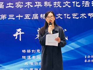 下午2:20,在音乐社激情的摇滚乐声下,全场气氛被点燃,开幕式正式开始。在主持人真诚地邀请与同学们热烈的掌声中,孟丽萍老师上台讲话。她介绍了“土实木华”科技文化活动和桥梁文化艺术节的发展历程及现状,肯定了桥协的精神传承,影响和鼓励了一代又一代的交大学子注重实践和科技创新,并提出大学生首先要保持对科技的兴趣和好奇心,然后静心钻研自己所学的领域,最后在实践中提升自我。”知之者不如好之者,好之者不如乐之者“,她希望同学们在今后的学习中保持对科技创新的热情,以科技竞赛为依托,不断强化科技创新能力。